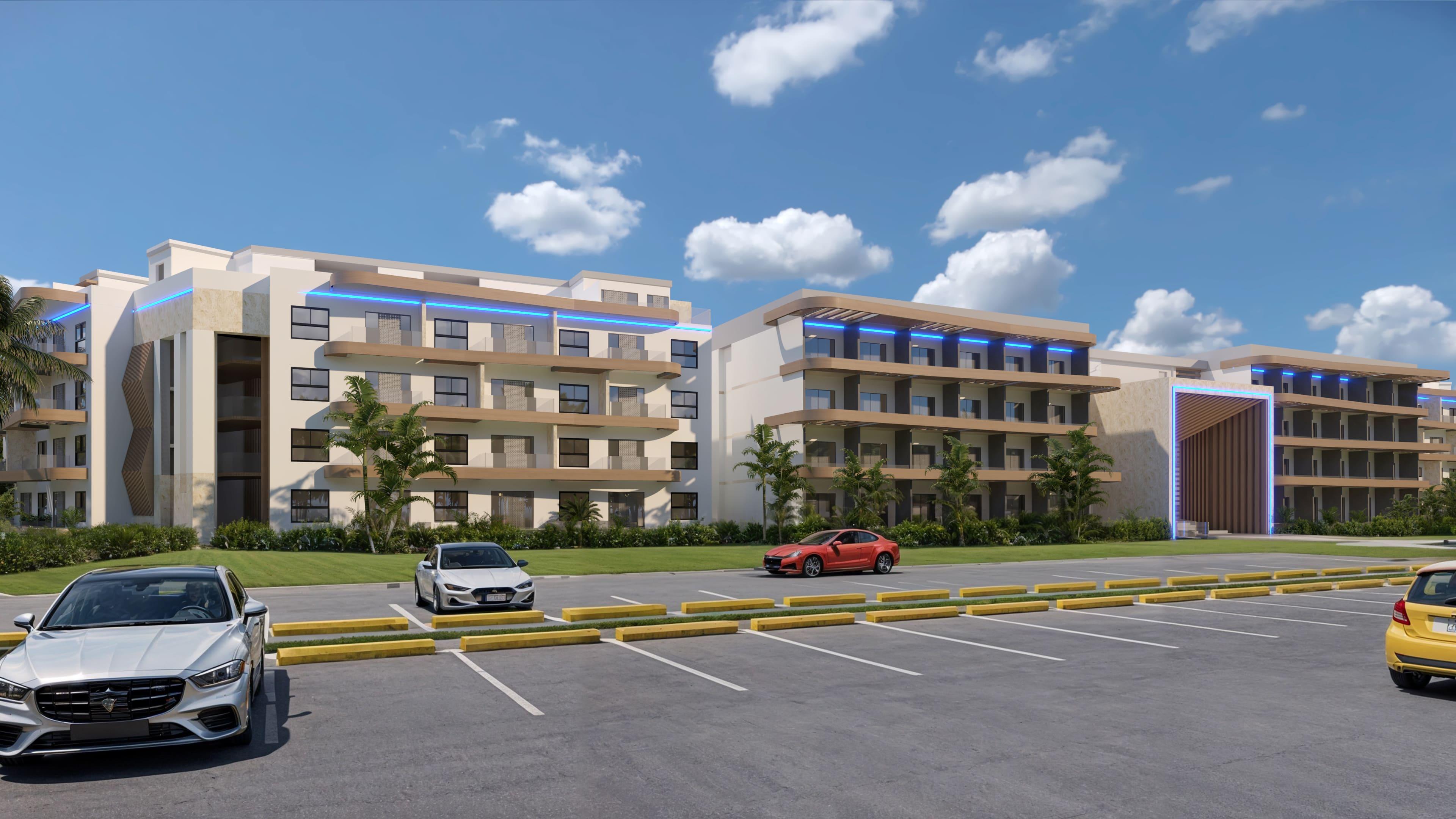 Midtown Blvd II es un moderno proyecto de estilo hotelero inspirado en el Miami de los años 80, ubicado a pasos de Downtown Punta Cana. Ofrece unidades tipo suite y apartamentos de 1, 2 y 3 habitaciones, ideales para vivir o invertir en rentas cortas. Disfruta de amenidades como piscina, gimnasio, canchas de pádel, recepción hotelera y seguridad 24/7, a solo 5 minutos de la playa y 10 del aeropuerto. Reserva con US$1,000.